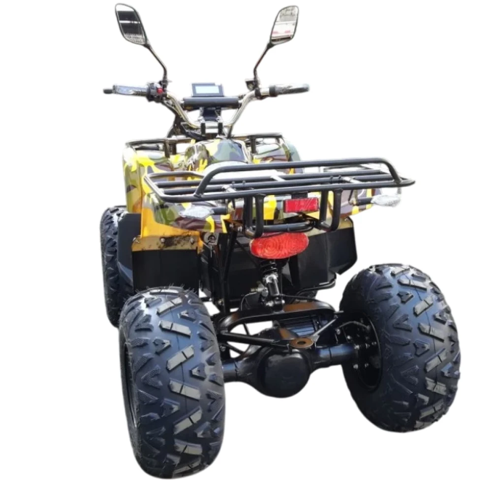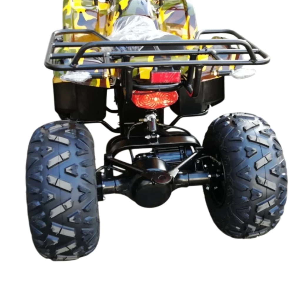 Двигатель мощностью 1000 Вт позволяет разогнаться до 40 км/ч, а 20 Ач гелевый аккумулятор позволит пройти “на одном дыхании” 40 км пути, а далее потребуется 8-часовая подзарядка. Квадроцикл оснащен передними и задними дисковыми гидравлическими тормозами, обеспечивая безопасность в нужный момент. Имеет спидометр с индикатором заряда, переключатель мощности в 3х режимах с ключем для родителей.