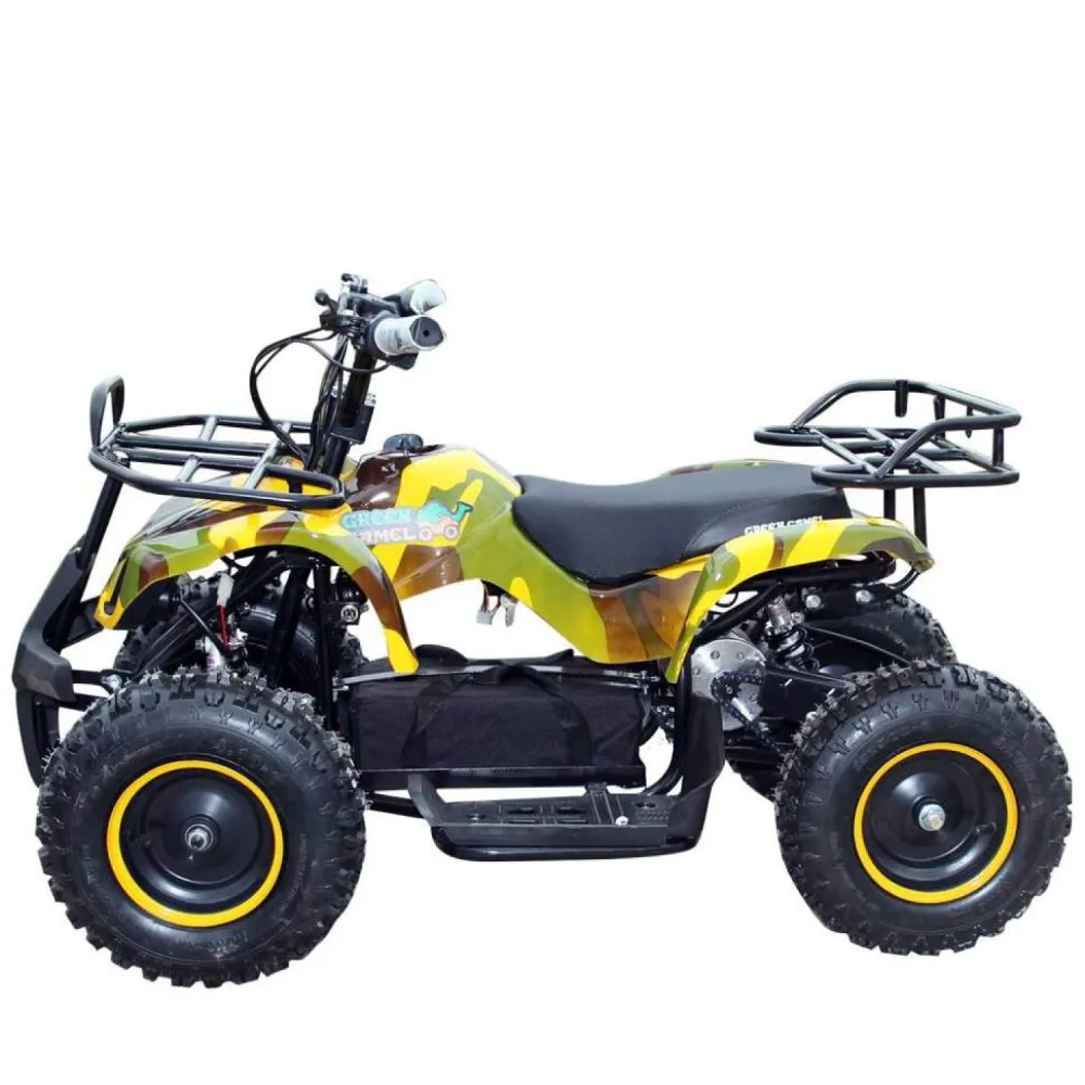 GreenCamel Gobi K200 Армейский желтый – это великолепный квадроцикл подходящий для детей в возрастном диапазоне от трёх до семи лет. Он способен выдержать вес до шестидесяти килограмм. Снабжён дисковыми механическими тормозами, которые установлены на все колёса. GreenCamel Gobi K200 также не страшен дождь – его электроника прекрасно защищена от попадания в неё влаги. Экологически чистый электромтор безопасный для природы и вашего ребёнка, способен разгонять квадроцикл до скорости в 20 км/ч. Подзарядив батарею на сто процентов (потребуется примерно восемь часов) ваш ребёнок сможет проехать на квадроцикле до двадцати километров.