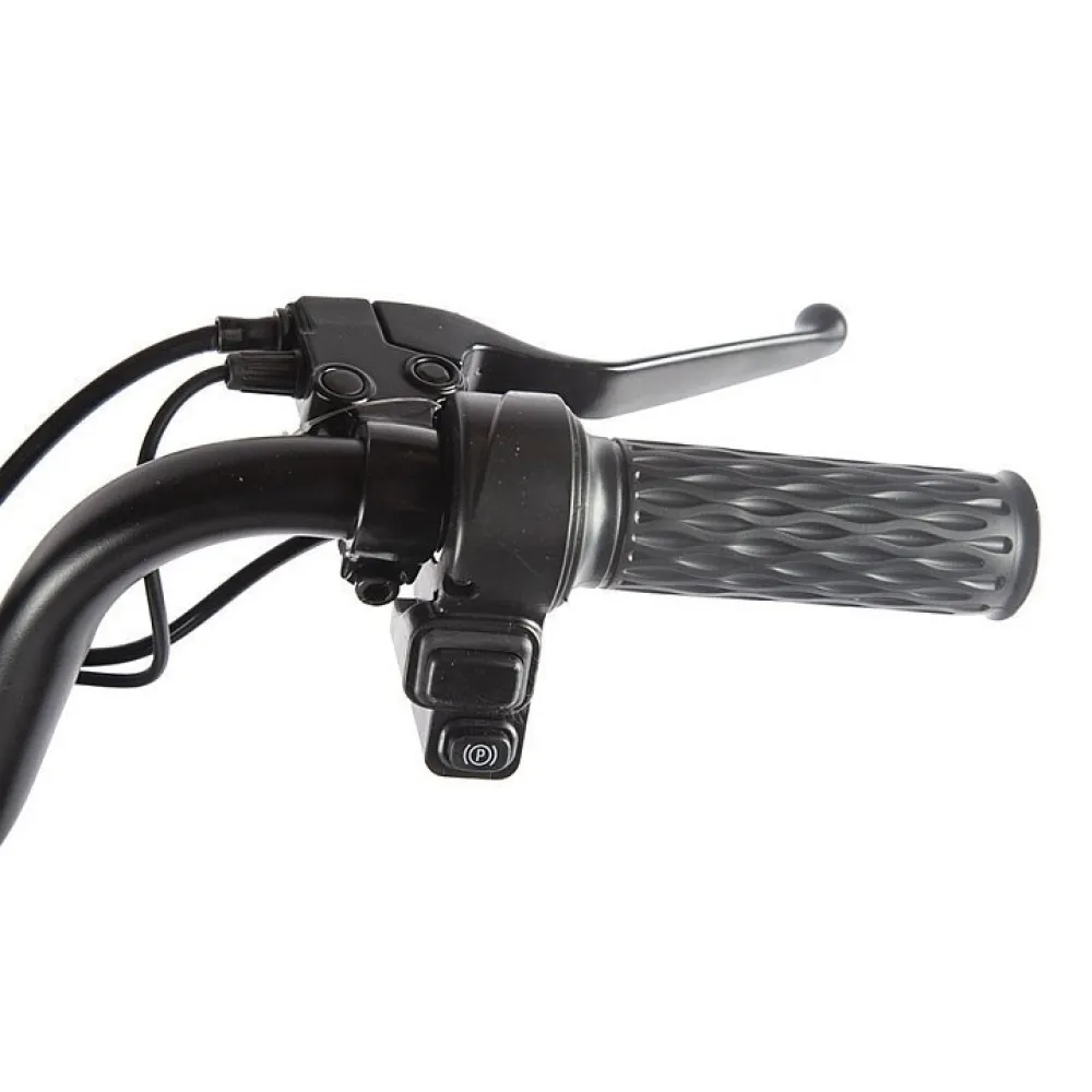 Мощность двигателя составляет 350 Вт, достаточная для развития скорости 25 км/час. Удобство и комфорт езды обеспечены мягким вместительным сиденьем, рассчитанным на двоих. Повторяя анатомические части тела материал изготовления и конструкционные особенности сиденья снижают нагрузку на позвоночник, снимают утомление.