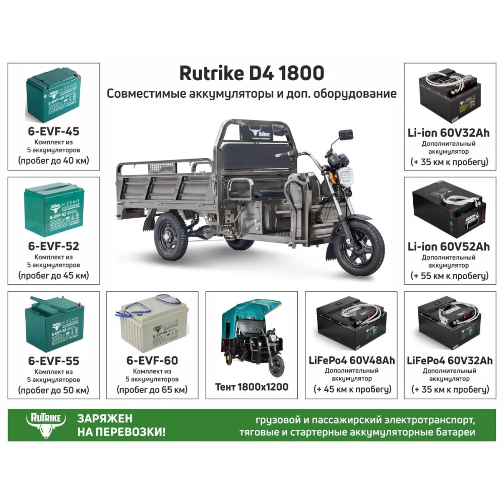 Вариант 1:Тяговый аккумулятор RuTrike 6-EVF-52 (12V52A/H C3)