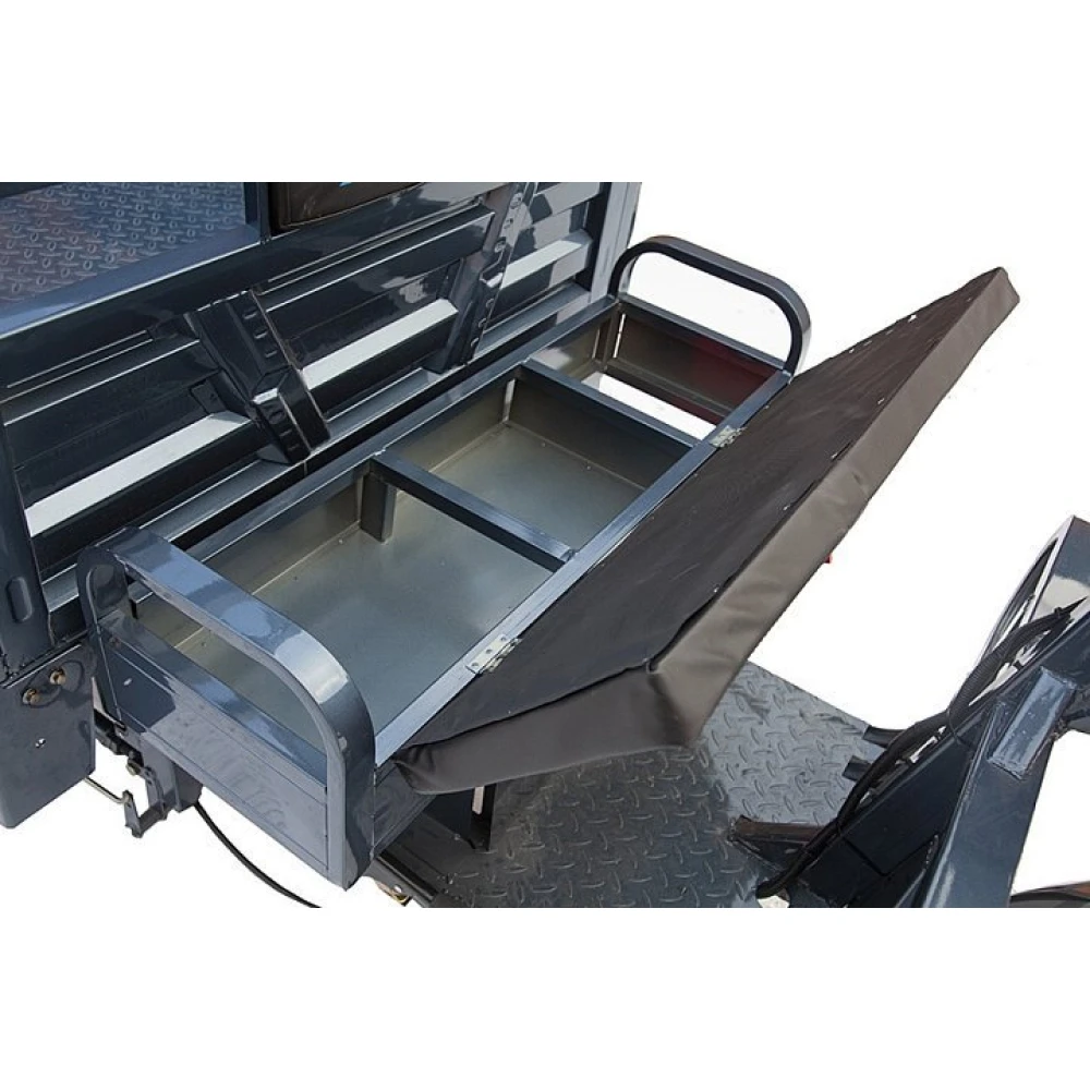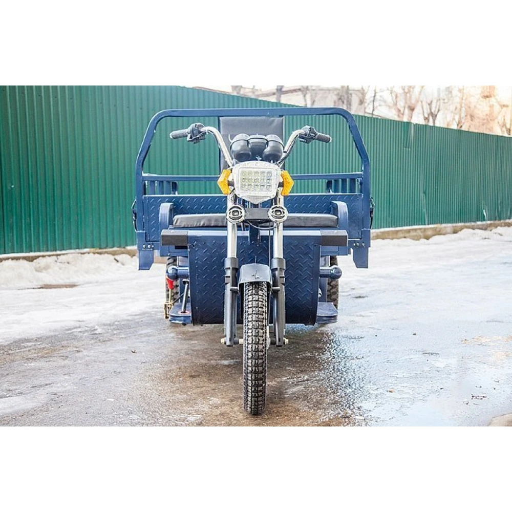 Грузовой электротрицикл Rutrike Титан 2000 гидравлический 60В 1500Вт с гидравлическим подъемным механизмом по внешнему виду напоминает мини-самосвал, технику для коммерческих целей. При параметрах мощности 1500 Вт электрогрузовичок способен транспортировать 1200 кг, развить скорость до 25 км/час и на одной подзарядке преодолеть 80 км пути.