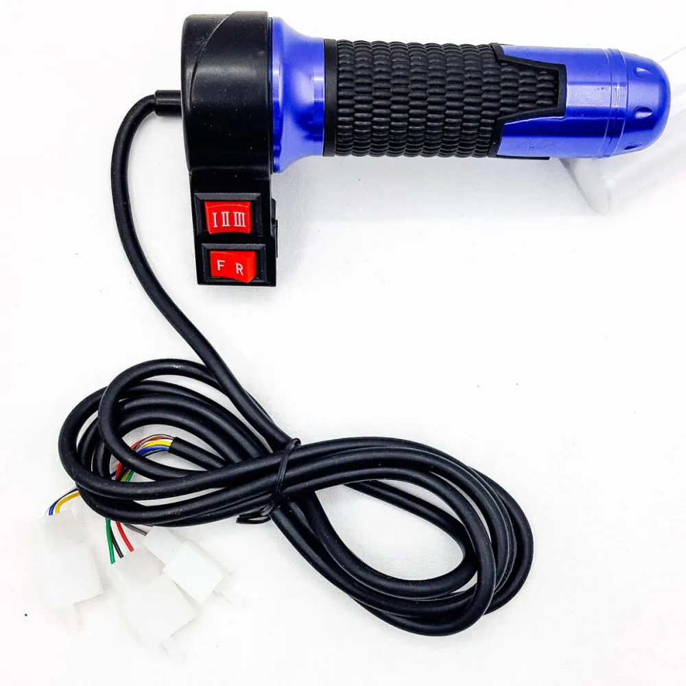 В комплекте: грипса (рукоятка), замок зажигания с ключем, кнопка переключения скорости, акселератор (газуля), шнур (кабель)